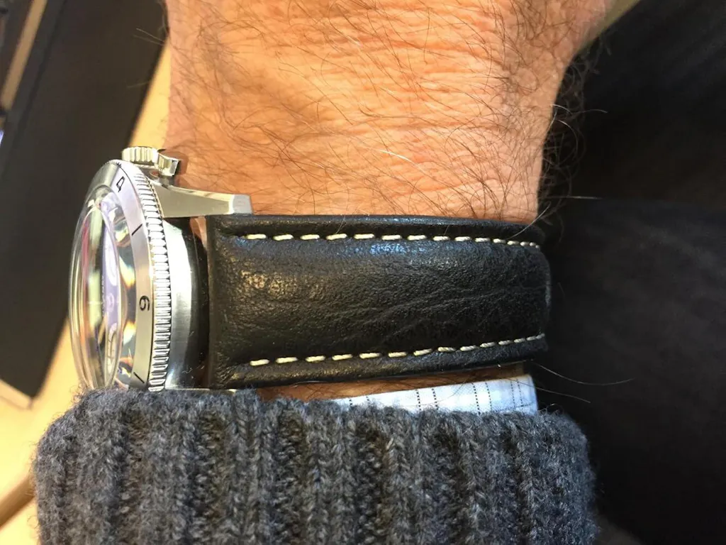 Bandini Mens Leather Band Strap, Buffalo Pattern, White Stitch, Padded, Standard & Extra Long (XL) - 18mm to 30mm